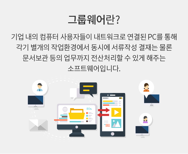 기존의 그룹웨어 제품에서 제공하는 다양한 기능들을 Human, Content, Function 관점에서 재편성하고 이를 플랫폼화하여 조직의 커뮤니케이션 생산성을 혁신적으로 향상시키는 솔루션입니다.
